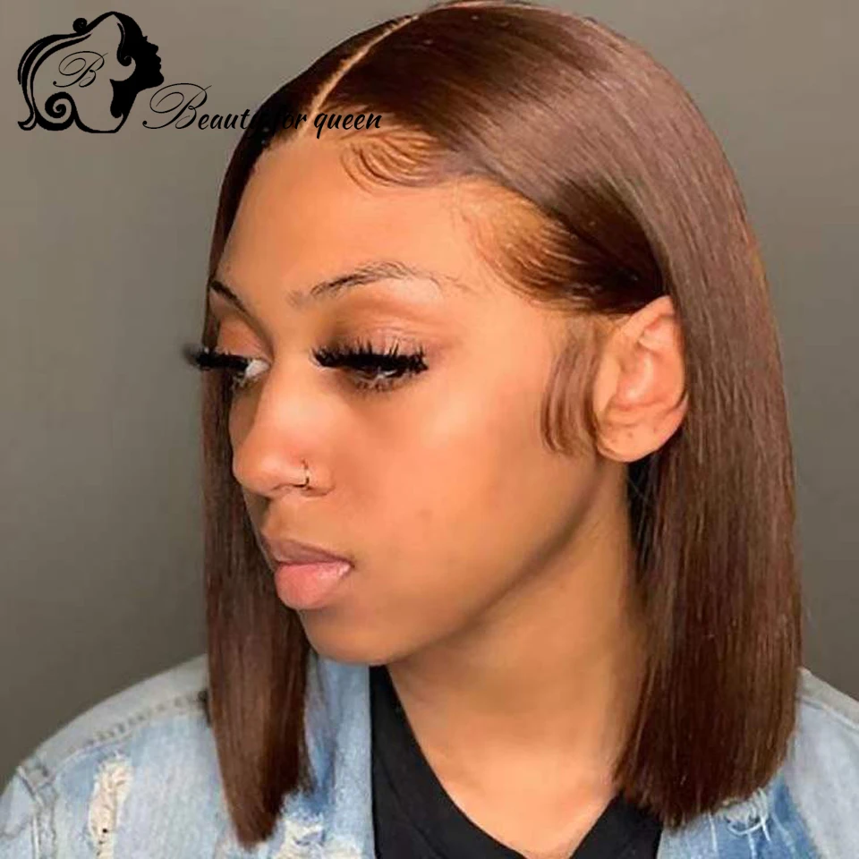 Brown Lace Front Straight HD Human Hair Wig Extensions For Women Green 13×4 150% Density Cosplay Colored Short 613 Bob Wigs