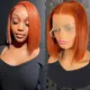 180% Lace Front Short Bob Wig Brazilian Orange Ginger 13X4 Straight Transparent Lace Frontal Wigs Human Hair For Black Woman