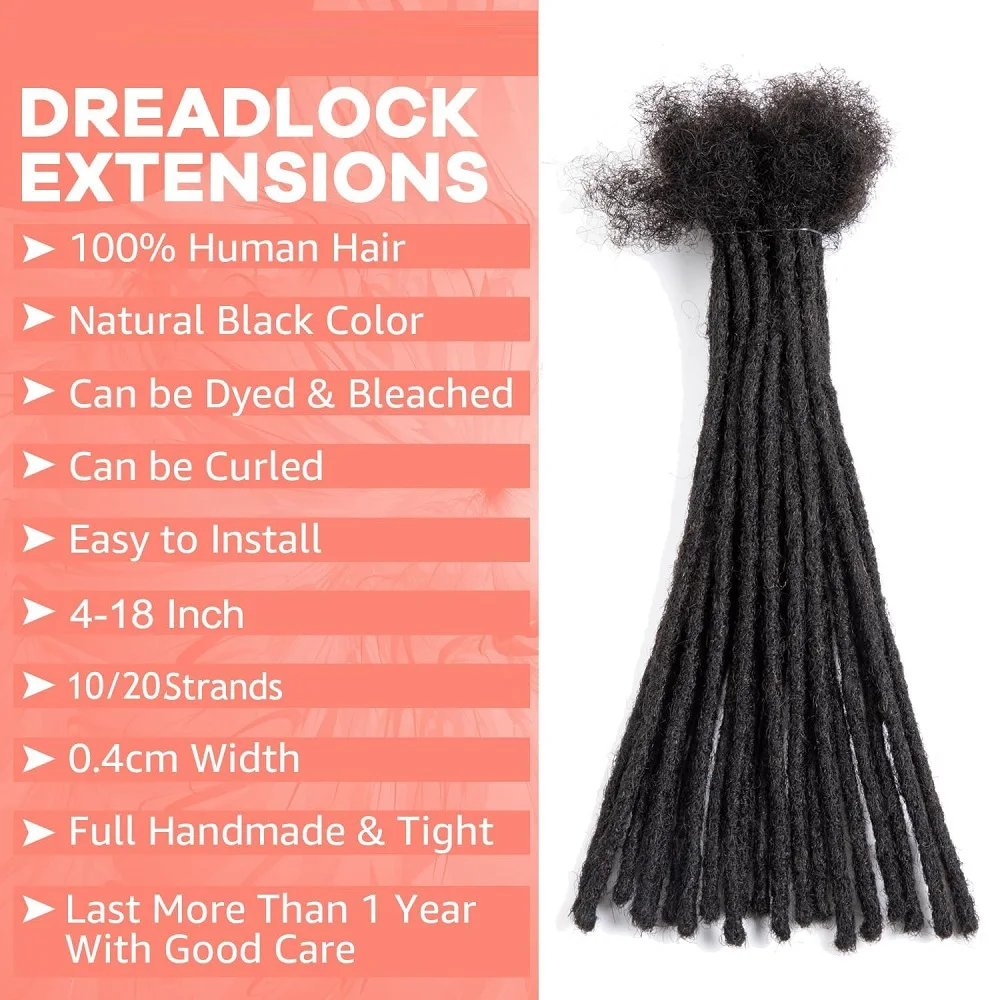 Handmade Permanent Locs Thickness Dreadlock Extensions Soft 100% Human Hair Locs Extensions Natural Black For Women Men Full